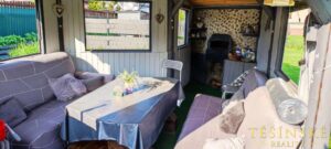 V zadní části domu se nachází vybavené venkovní posezení s kuchyňkou, výčepem, plynovým grilem, lednicí, stereo rádiem s CD a bluetooth přehráváním, ideální pro chvíle odpočinku s rodinou nebo přáteli. Udržovaná zahrada nabízí zahradní altán, bazén, udírnu, kůlna na nářadí a sekačku, venkovní suchý záchod, zateplený kotec pro psa, kurník pro chov slepic a vyvýšené záhony, což vytváří dokonalé prostředí pro relaxaci a zahradničení.