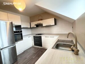 2) bytová jednotka v horní patře 4+1 obývací pokoj, kuchyň, tři pokoje, šatna, koupelna, toaleta.