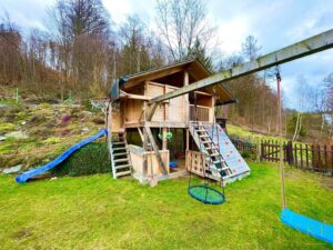 V přízemí domu se nachází plně vybavený byt 3+kk s obývacím pokojem a dvěma pokoji, využíván jako ubytovací zařízení Ubytování u Gajdošů Malá Morávka.