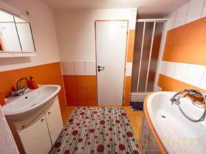 Druhá bytová jednotka se využívá k bydlení. Vedle domu jsou dvě prostorné garáže.