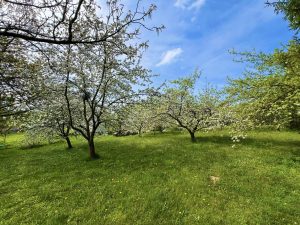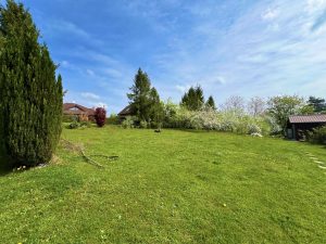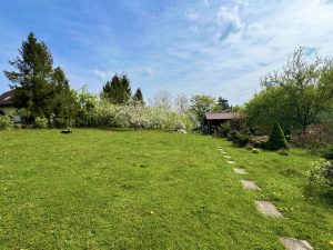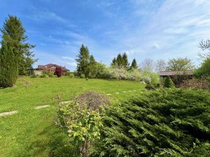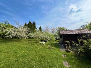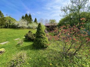Pozemek o rozloze 1 501 m2 je oplocený a jsou na něm ovocné i okrasné stromy a keře.